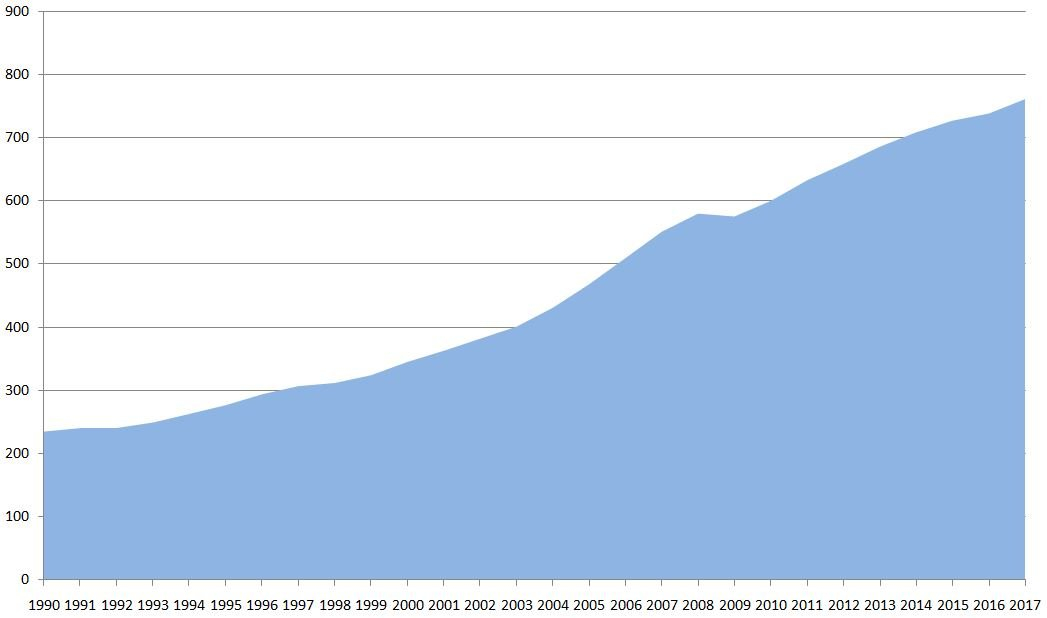 Vývoj HDP Jihoafrického HDP (PPP) v miliardách dolarů