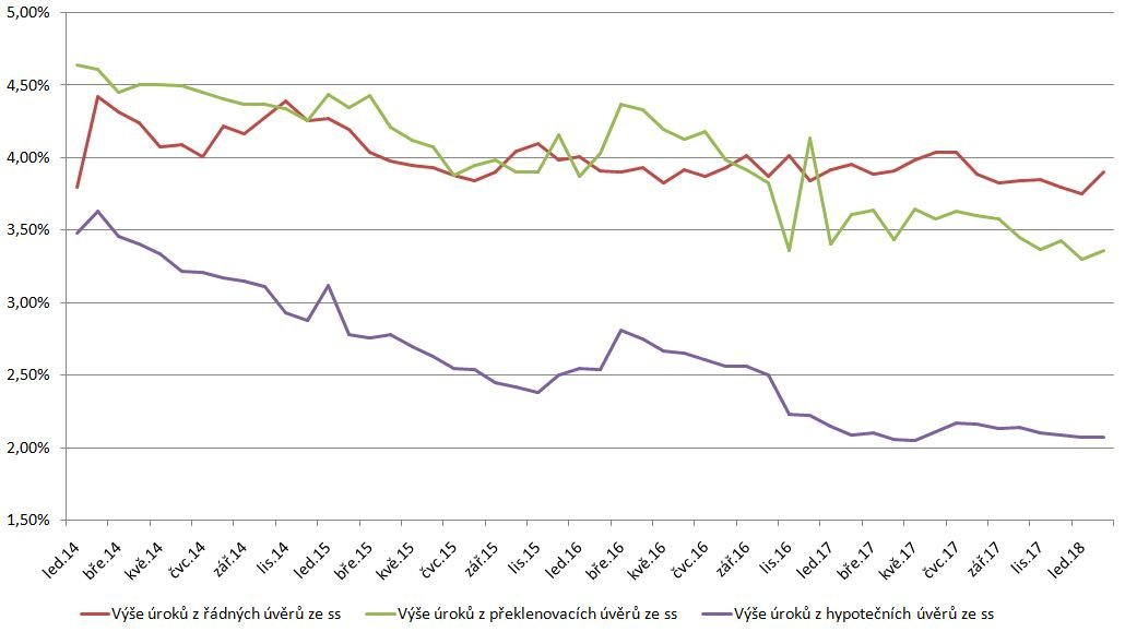 Výše úroků z úvěrů poskytovaných stavebními spořitelnami