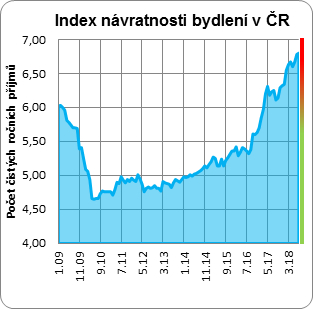 Růst cen nemovitostí se negativně promítá do dostupnosti vlastního bydlení. Zatímco loni vyšel českou domácnost byt o průměrné ceně 2,6 mil. Kč na 6,25násobek svých čistých ročních příjmů (měřeno indexem návratnosti bydlení). Letos je to již 6,8násobek. Aktuální situaci rozhodně nelze označit za příznivou pro pořízení bydlení.