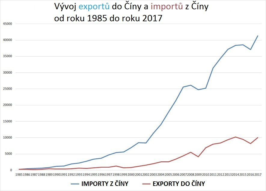 Graf: Vývoj exportů a importů mezi USA a Čínou (Zdroj: www.cnsnews.com)