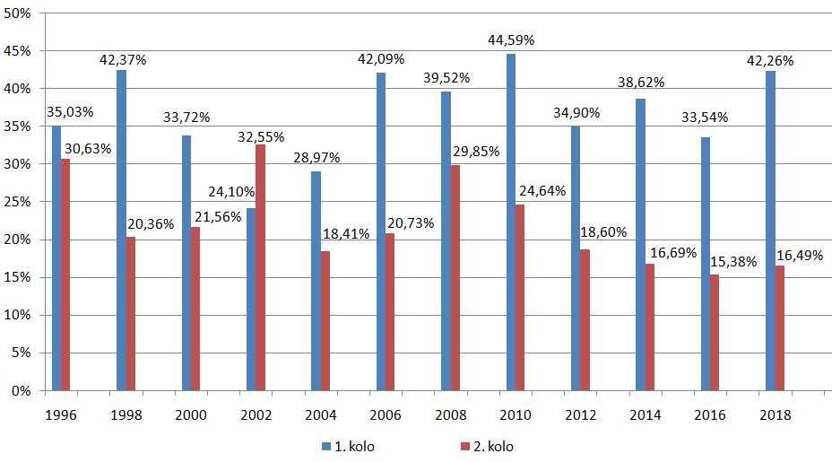 Nejnižší účast v 2. kole byla v roce 2016, kdy přišlo pouhých 15,38 % oprávněných voličů. Nejvíce v 2. kole přišlo v roce 2002 a to celkem 32,55 % voličů.