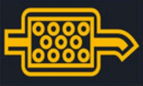 Filtr pevných částic najdete v novějších vozech se vznětovým motorem. Tento symbol se rozsvítí, pokud je filtr pevných částic zanesen sazemi a jejich vypálení se nedaří. S takovým automobilem zkuste vyjet někde mimo město a svižnou jízdou na 4. či 5. rychlostní stupeň zkuste vypálit saze, jízda by měla trvat alespoň 15 až 20 minut. Tuto jízdu neodkládejte, protože by se vám mohl filtr ucpat tak, že se vypálení již nezdaří, a výměna filtru vás nevyjde nejlevněji. Jestliže ani svižná jízda nezabere, tak navštivte servis, kde vám pomohou saze vypálit.