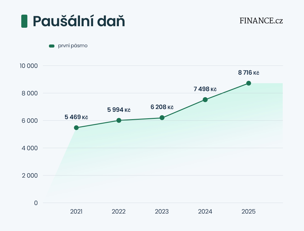 Růst paušální daně v prvním pásmu od jejího zavedení v roce 2021