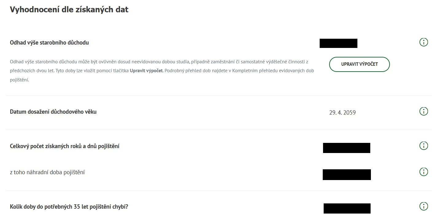 - Orientační výši vašeho důchodu podle pravidel pro aktuální rok,