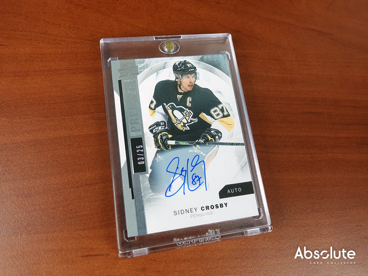 Podepsaná karta Sidneyho Crosbyho, s cenou kolem 8 až 10 tisíc Kč, může být zajímavou investicí, protože ceny Crosbyho karet jsou poměrně nízké na to, že vyhrál tři Stanley Cupy. (zdroj: Absolute Card Collector, publikováno se souhlasem)