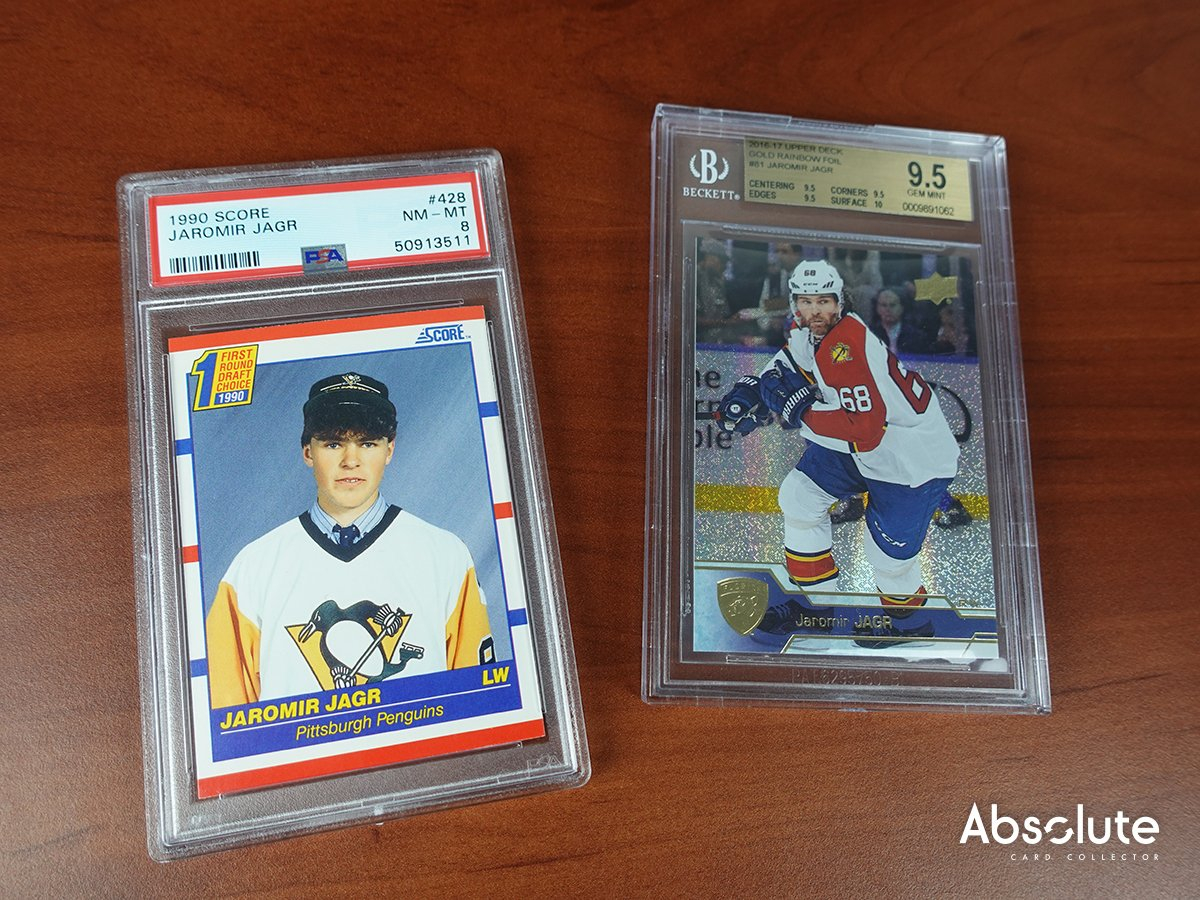 Gradované karty Jaromíra Jágra – RC od PSA se známkou 8 (těch karet je hodně, není tak hodnotná). Paralelní karta Jaromíra Jágra za Floridu, ale spíš pro ukázku gradované karty od BGS (Beckett). (zdroj: Absolute Card Collector, publikováno se souhlasem)