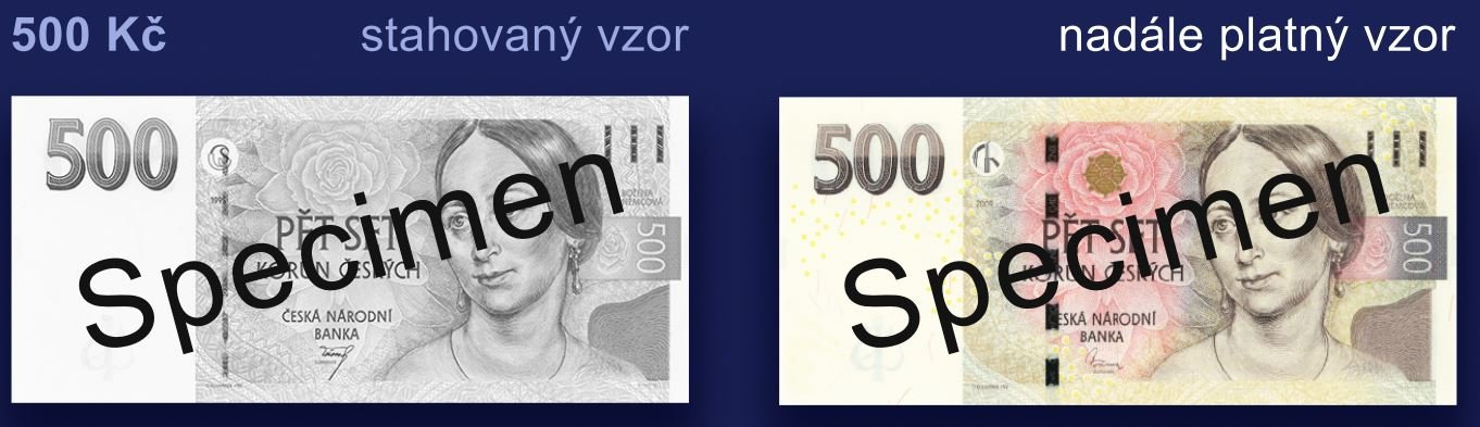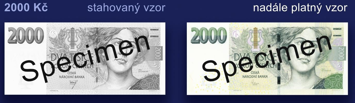 „Vzory od sebe dále odlišuje rok uvedení do oběhu, vyobrazený na přední straně bankovky, a některé další ochranné prvky,“ uvádí dále Česká národní banka. Vyřazení bankovek má přispět ke snížení rizika jejich padělání a zajistit hladký peněžní oběh.