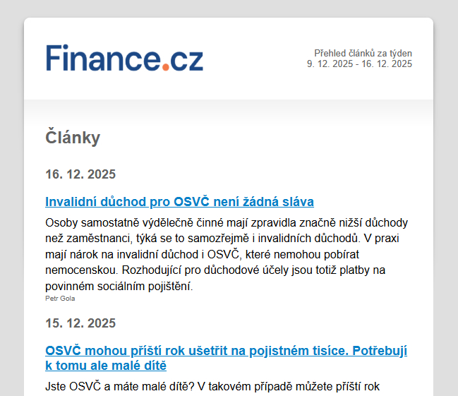 Objednat si můžete týdenní přehled článků.