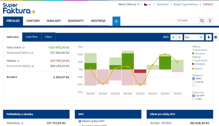 Díky přehlednému dashboardu budete mít přehled o svém podnikání a financích