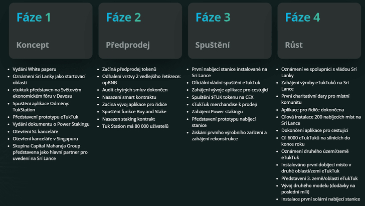 Roadmapa s celkem 4 fázemi pro projekt eTukTuk. Zdroj: etuktuk.io